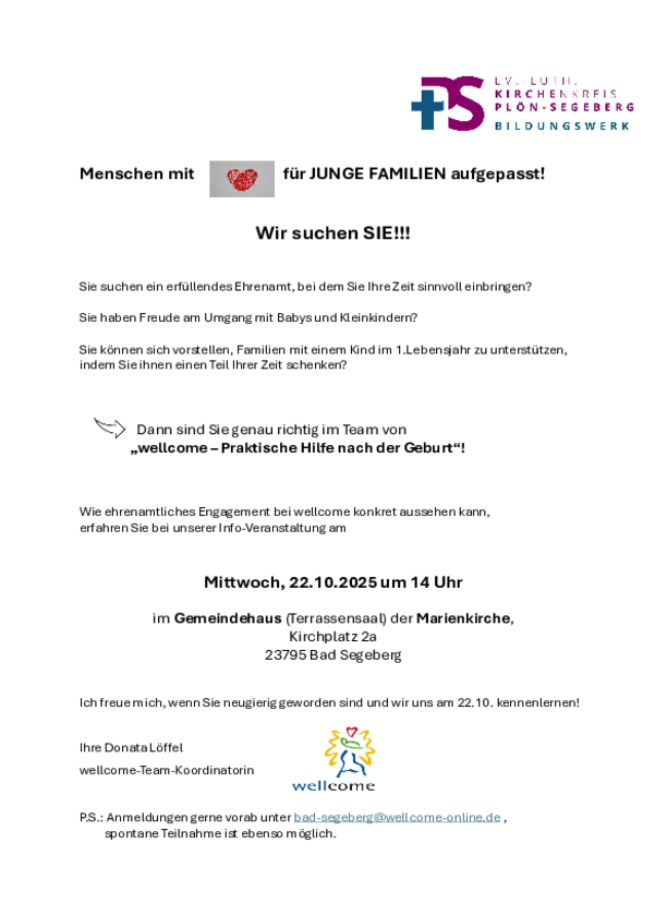 Menschen mit Herz für JUNGE FAMILIEN aufgepasst! Wir suchen SIE!!!
