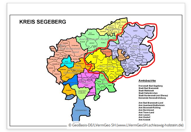 Als vom Kreis Segeberg beauftragte Fachberatung für die Städte Bad Segeberg und Wahlstedt sowie die Ämter Trave Land und Leezen sind wir als Beratung, Vermittlung und Begleitung für Eltern und Kindertagespflegepersonen in den folgenden Regionen tätig:
